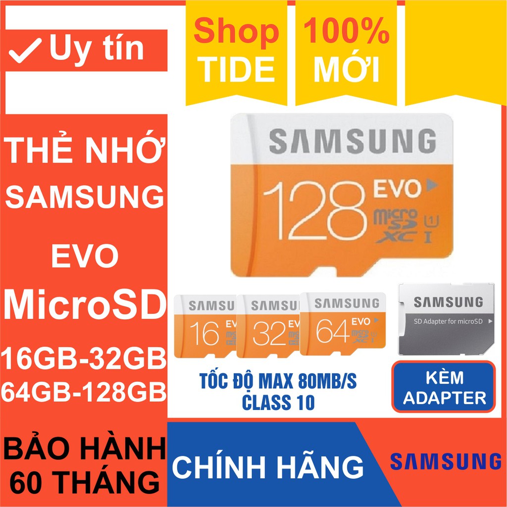 THÔNG TIN SẢN PHẨM:Thẻ nhớ Micro SD Samsung Evo plus 16GB – 32GB – 64GB – 128GB (Kèm Adapter)