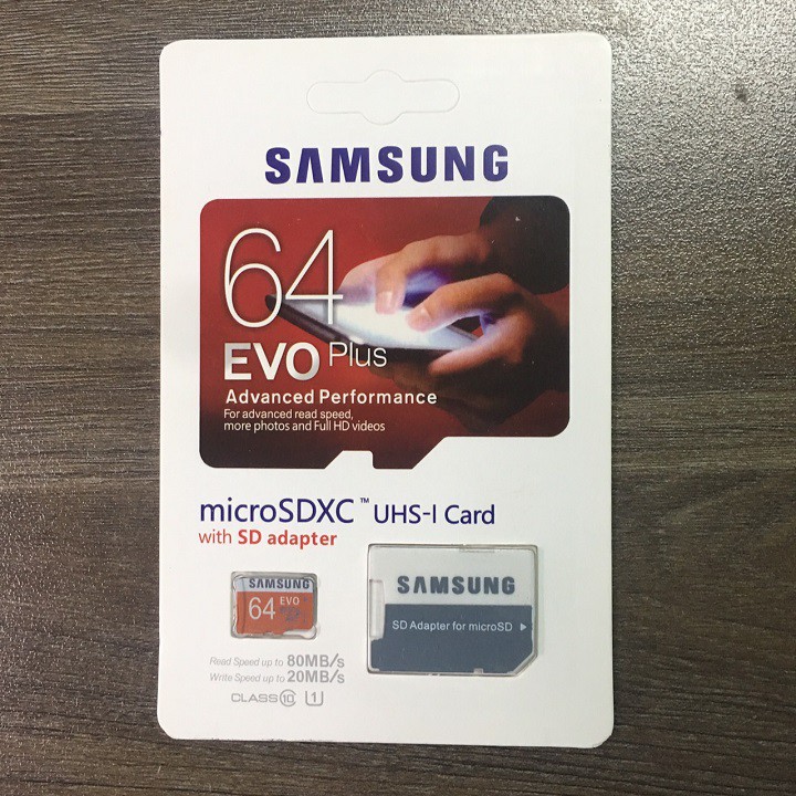 - Thẻ nhớ MicroSD Samsung Evo Plus 80MB/s – Bộ nhớ nhanh nhất thế giới mà Samsung vừa cho ra đời giúp đáp ứng tất cả nhu cầu về tốc độ, không gian lưu trữ và cải thiện tối đa hiệu năng của những dòng SmartPhone và Tablet mới nhất. Cho bạn sự trải nghiệm tuyệt vời nhất.