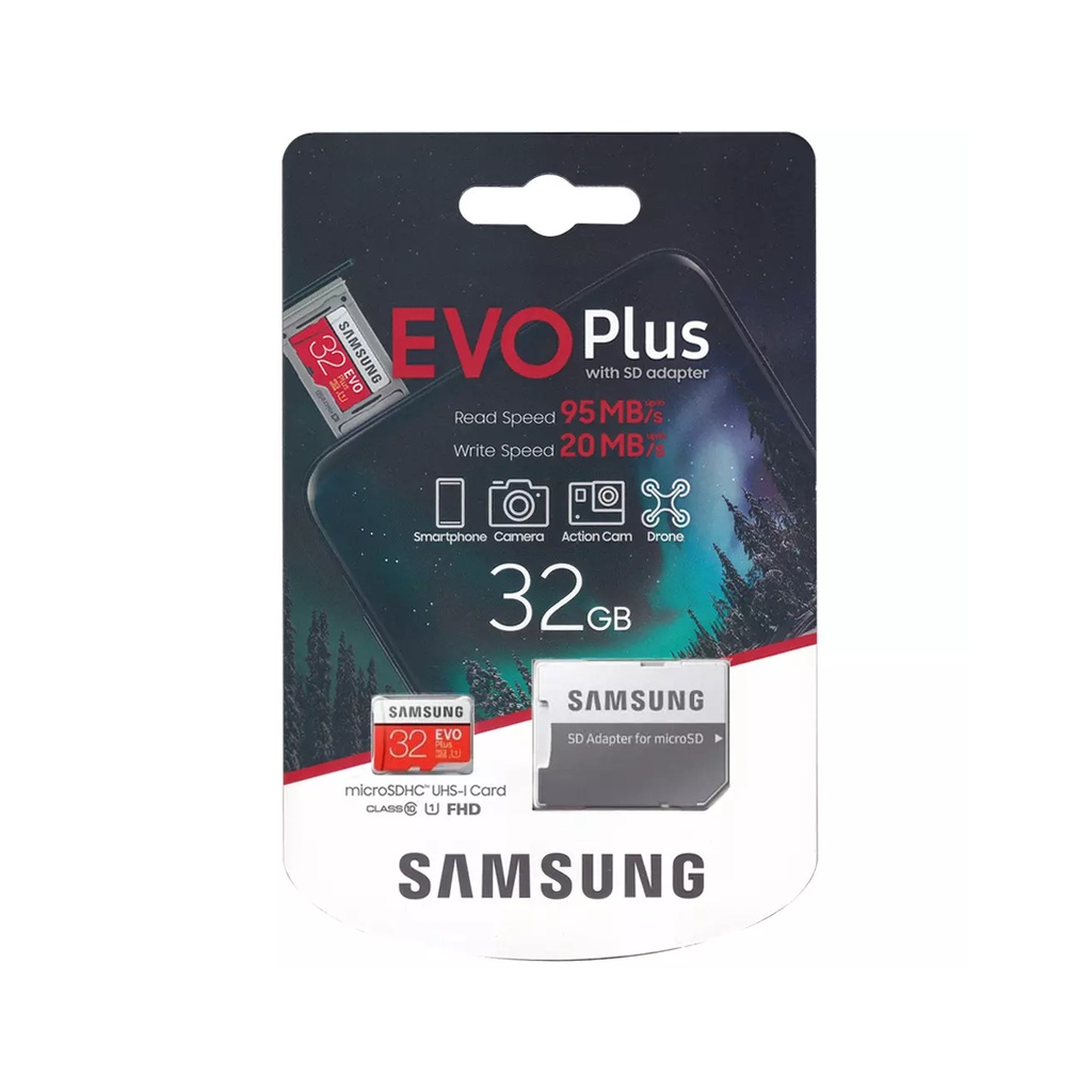 Điện Thoại & Phụ Kiện > Phụ kiện > Thẻ nhớ || Thẻ nhớ microSD Samsung Evo Plus 32GB / 64GB / 128GB tốc độ upto 100MB/s kèm Adapter (Bảo hành 10 năm) + Đầu đọc thẻCòn hàng