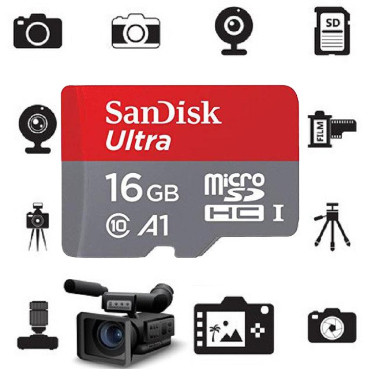 - Thẻ nhớ MicroSDHC 16Gb Sandisk Ultra giúp bạn có rất nhiều không gian để lưu trữ hình ảnh và video của bạn.