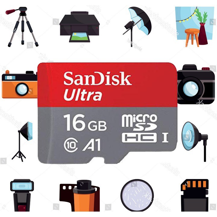 - Thẻ nhớ MicroSD Sandisk Ultra với tốc độ cao, cho phép bạn chụp ảnh chất lượng cao và quay video Full HD rất mượt mà.