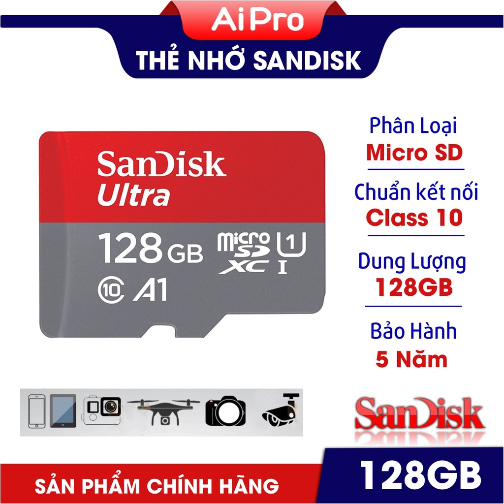 Thẻ Nhớ MicroSD SanDisk Ultra 128GB - Hàng nhập khẩu - Bảo Hành 5 năm