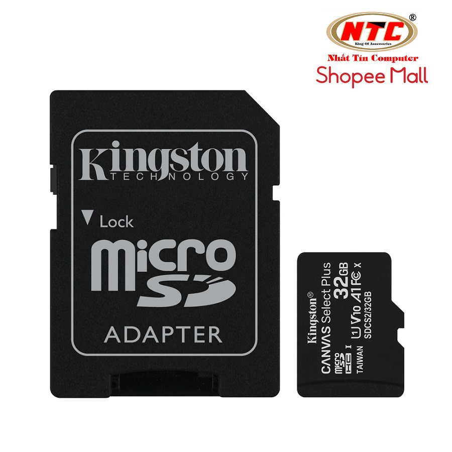 Điện Thoại & Phụ Kiện > Phụ kiện > Thẻ nhớ || Thẻ nhớ microSDHC Kingston Canvas Select Plus 32GB U1 V10 A1 100MB/s (Đen) - Kèm adapterCòn hàng