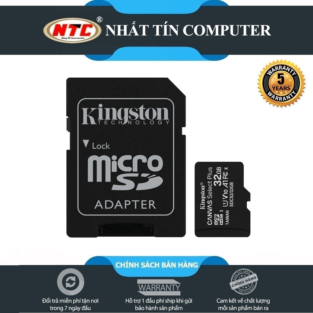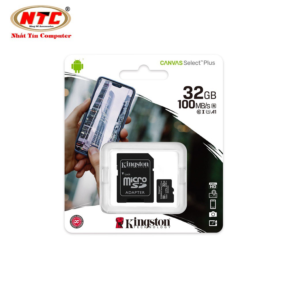 Điện Thoại & Phụ Kiện > Phụ kiện > Thẻ nhớ || Thẻ nhớ microSDHC Kingston Canvas Select Plus 32GB U1 V10 A1 100MB/s - Kèm Adapter (Đen)Còn hàng