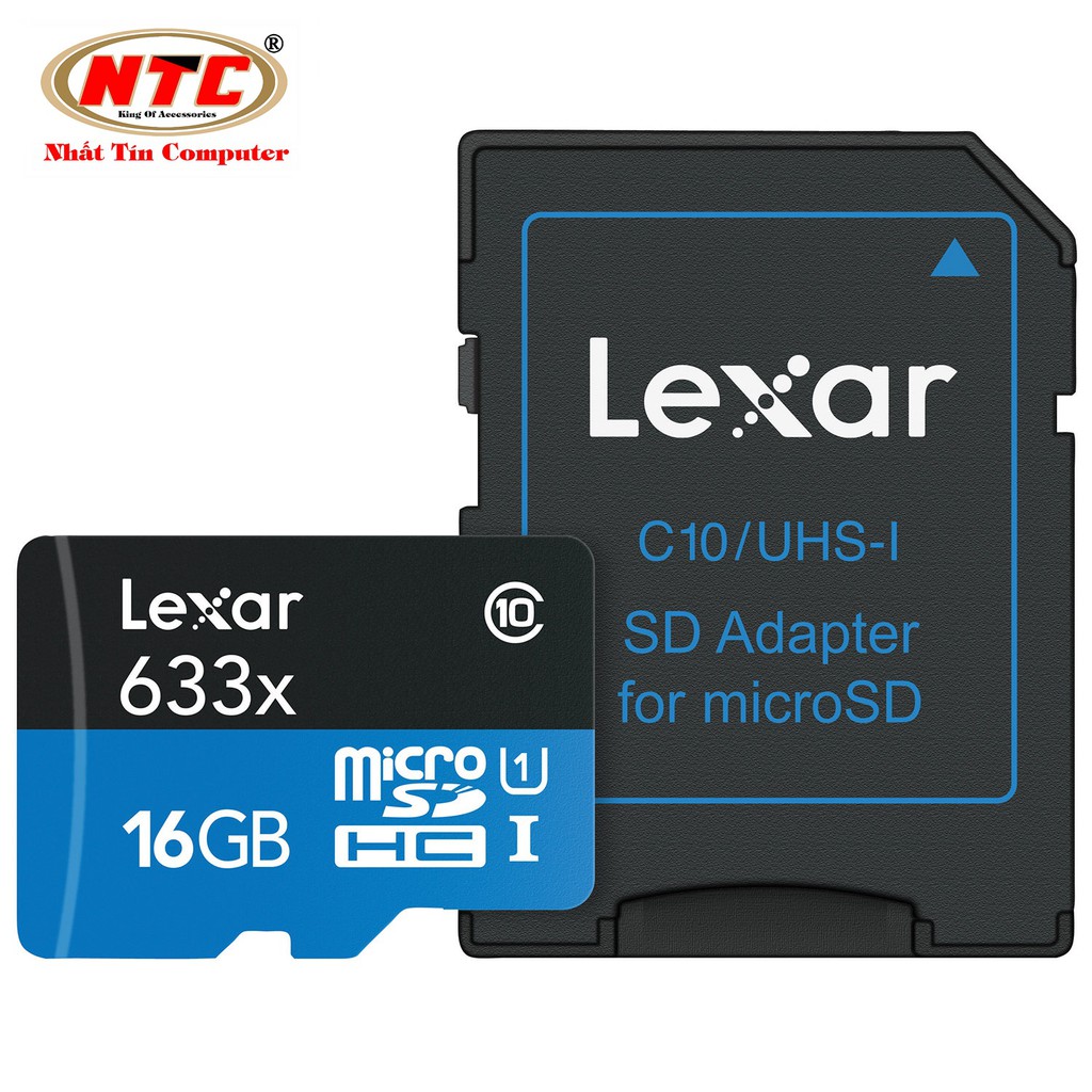 Thẻ nhớ MicroSDHC Lexar 16GB 633x UHS-I U1 95MB/s kèm adapter (Xanh)