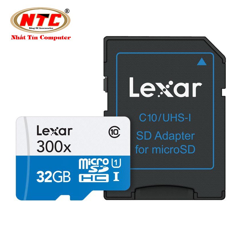 Thẻ nhớ MicroSDHC Lexar 32GB Class 10 300x 45Mb/s kèm adapter - không box (Xanh)
