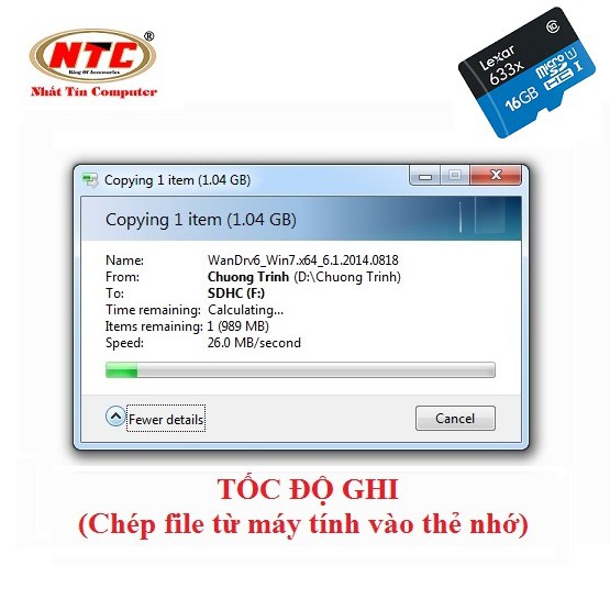 Tốc độ ghi tối đa: 20 MB/s (tốc độ trung bình sẽ thấp hơn)