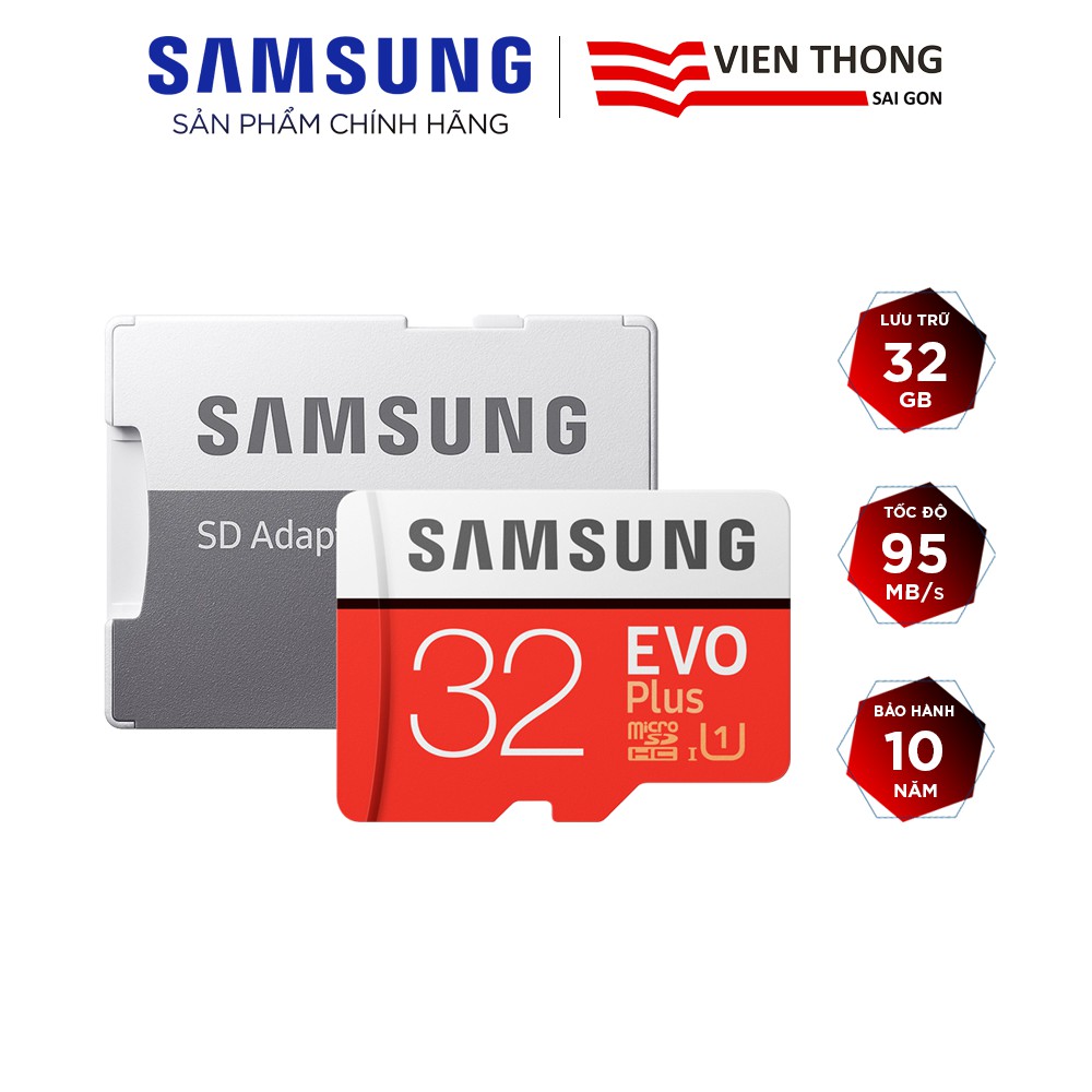 Điện Thoại & Phụ Kiện > Phụ kiện > Thẻ nhớ || Thẻ nhớ microSDHC Samsung Evo Plus 32GB upto 95MB/s U1 kèm Adapter (Bảo hành 10 năm) - Hãng phân phối chính thứcCòn hàng