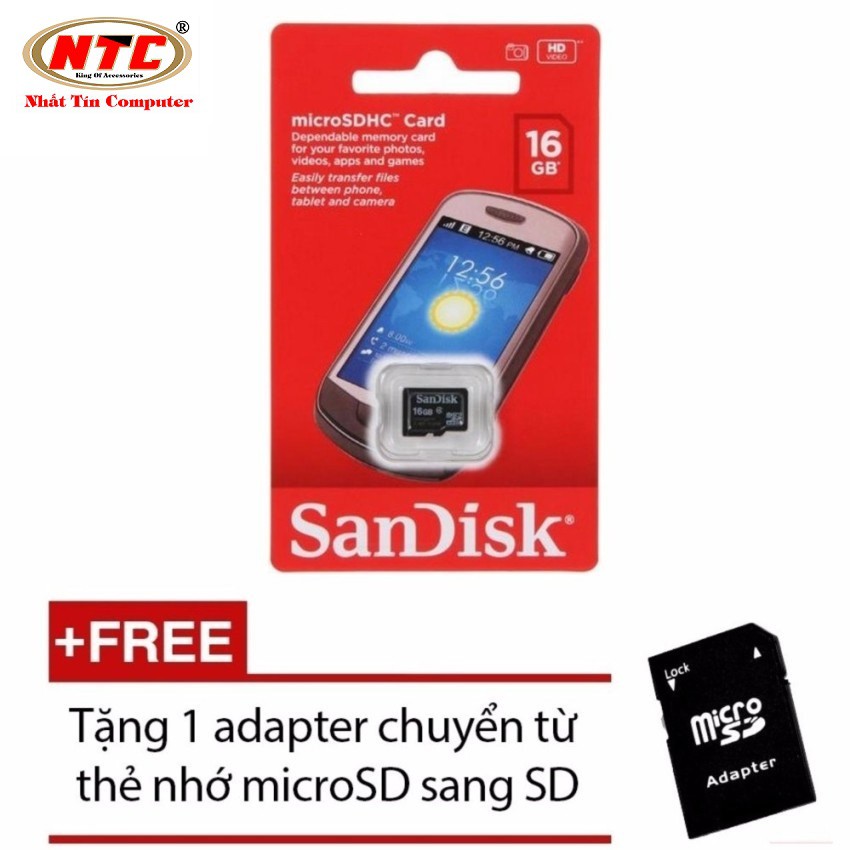 Giới thiệu Thẻ nhớ MicroSDHC Sandisk 16GB Class 4 + Tặng 01 adapter microSD