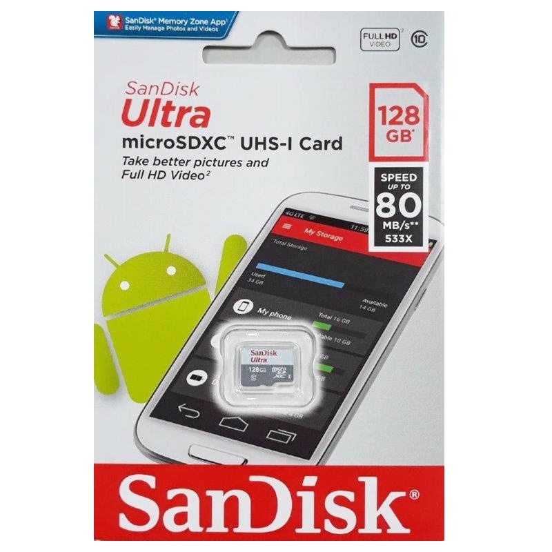Điện Thoại & Phụ Kiện > Phụ kiện > Thẻ nhớ || Thẻ nhớ microSDHC Sandisk 32GB 64Gb 128GB upto 100MB/s 533X Ultra - Hãng phân phối chính thứcCòn hàng
