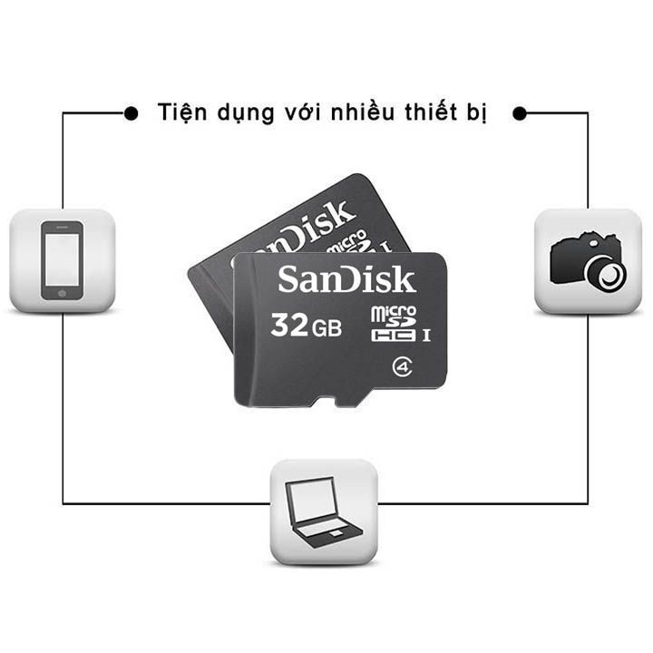 Điện Thoại & Phụ Kiện > Phụ kiện > Thẻ nhớ || Thẻ nhớ MicroSDHC SanDisk 32GB Class 4 (Đen)Còn hàng