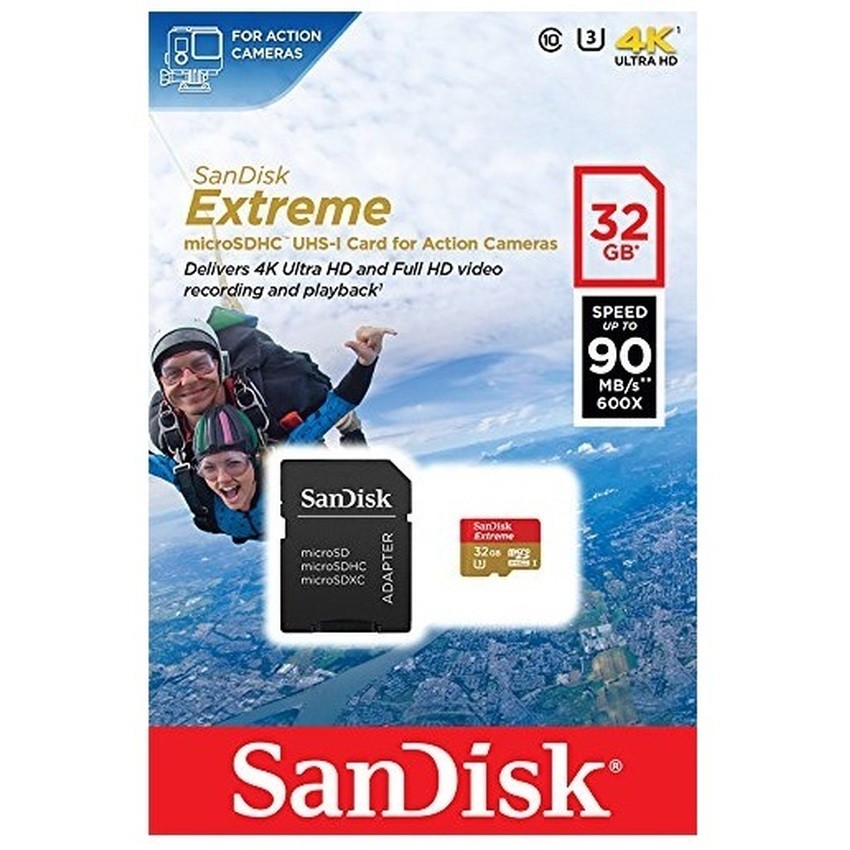 Thẻ nhớ microSDHC Sandisk Extreme 667X A1 V30 32GB UHS-I U3 100MB/s (Gold)Thẻ nhớ MicroSDHC SanDisk Extreme V30 A1 667x với tốc độ ghi cực nhanh cho phép chụp hình và quay Video Full HD, 4k dành cho điện thoại thông minh Android, máy ảnh MIL, hoặc GoPro Hero3, Hero3 +, Hero4, và Hero +. Thẻ nhớ MicroSDHC SanDisk Extreme V30 A1 667x được thiết kế đặc biệt có thể tồn tại ngay cả trong điều kiện môi trường khắc nghiệt nhứt. Tốc độ nhanh cho phép bạn chụp rõ từng chi tiết và giúp di chuyển dữ liệu cực nhanh. Với dung lượng lên đến 128GB giúp mở rộng bộ nhớ điện thoại của bạn và hỗ trợ quay phim 4K chất lượng cao. Tất cả các sản phẩm SanDisk được sản xuất với tiêu chuẩn cao nhứt và đã được thử nghiệm chặt chẽ, vì vậy bạn có thể tự tin vào chất lượng vượt trội, hiệu suất và độ tin cậy của mỗi sản phẩm SanDisk.