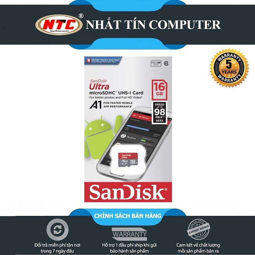 Thẻ nhớ MicroSDHC SanDisk Ultra A1 16GB Class 10 U1 98MB/s box Anh - Model 2019