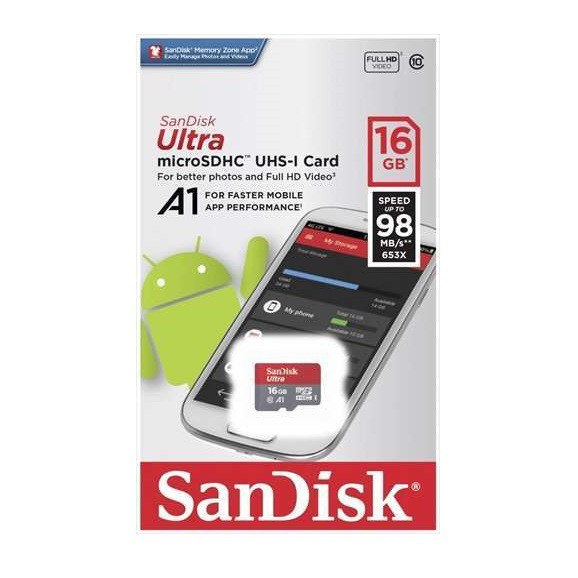 Giới thiệu Thẻ nhớ MicroSDHC SanDisk Ultra A1 16GB Class 10 U1 98MB/s box Anh - Model 2019