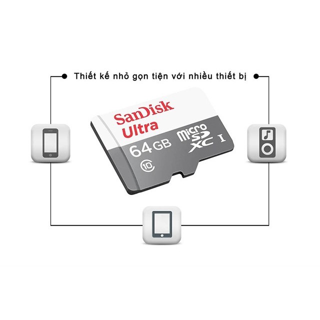 Thẻ Nhớ MicroSDHC SanDisk Ultra 64GB - Nhập khẩu - bảo hành 5 năm