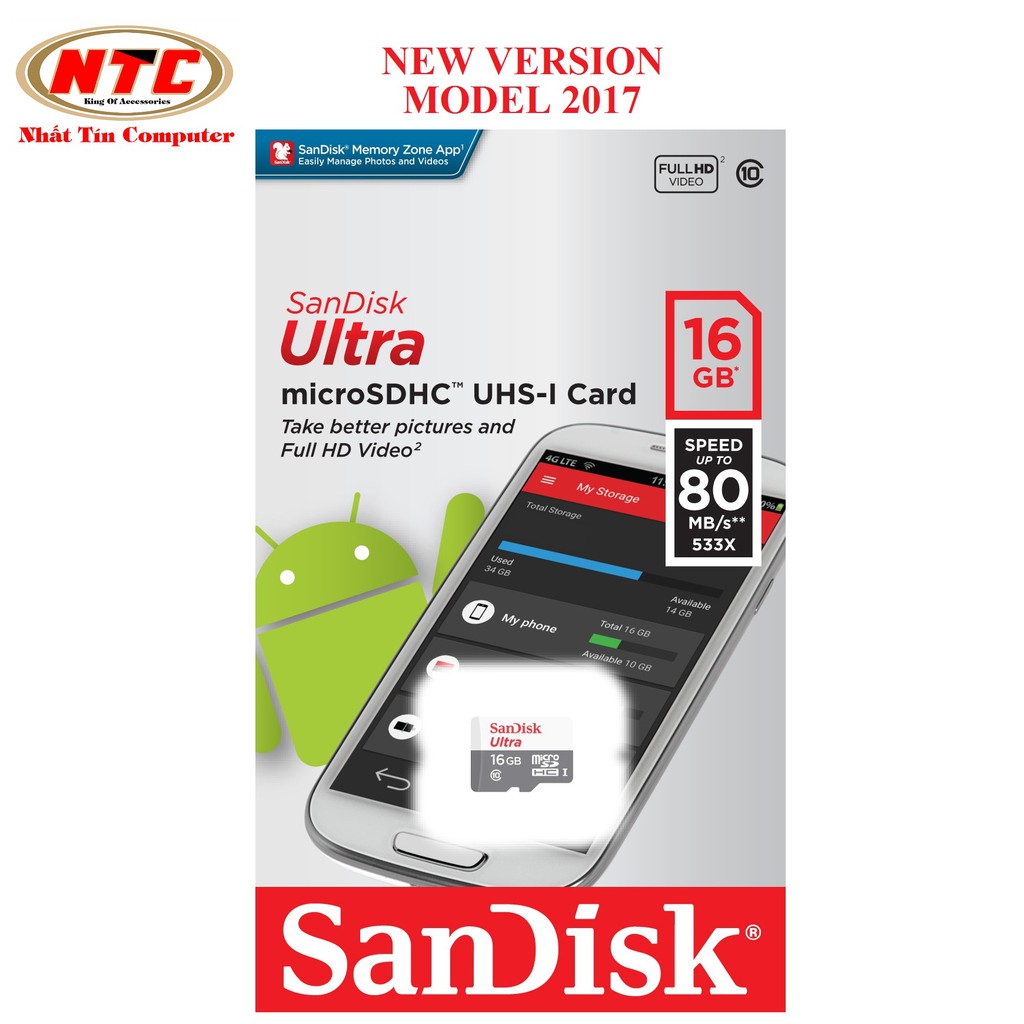 Điện Thoại & Phụ Kiện > Phụ kiện > Thẻ nhớ || Thẻ nhớ MicroSDHC SanDisk Ultra 533X 16GB 80MB/s - Model 2017 (Trắng bạc)Còn hàng