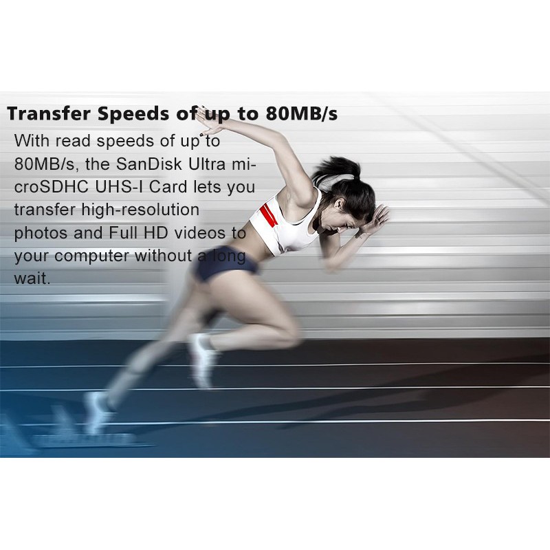 Với tốc độ cực nhanh lên đến 80MB/s, thẻ nhớ MicroSD Sandisk Ultra có thể nhanh chóng di chuyển tất cả hình ảnh và video của bạn từ điện thoại hoặc máy tính bảng của bạn để máy tính.