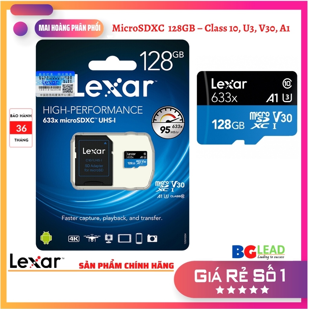 Thẻ nhớ MicroSD Lexar High-Performance A1 633x V30 UHS-I được thiết kế theo chuẩn Class 10 và công nghệ UHS-I mới nhất cung cấp tốc độ truyền dữ liệu lên tới 633x (95MB/s). Đây là giải pháp bộ nhớ cao cấp cung cấp mang đến cho bạn tốc độ và khả năng lưu trữ mà bạn cần.