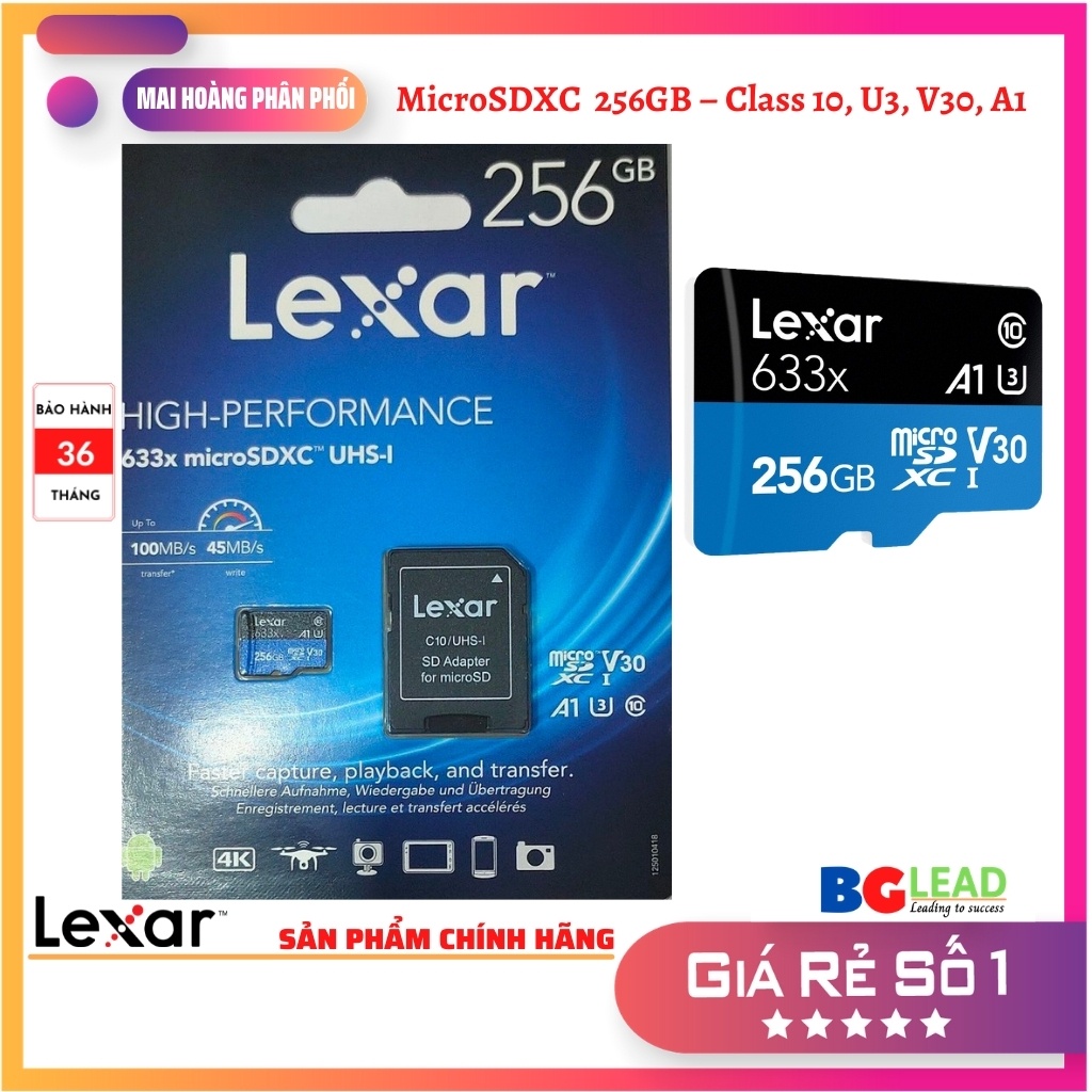 Thẻ nhớ LEXAR 256GB microSD XC - USH-I Class 10 U3, V30, A1