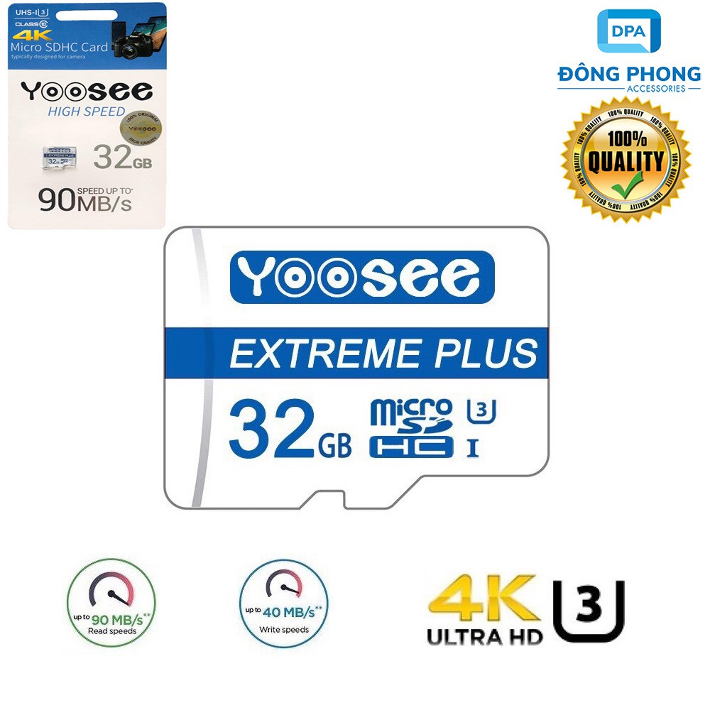 Thẻ Nhớ Microsdxc 32GB Yoosee Extreme Plus UHS-I U3 4K R90MB/S W40MB/S Chính Hãng- HÀNG BÊN SHOP CHÍNH HÃNG TRONG HỘP NGUYÊN SEAL, KHÔNG PHẢI LOẠI ĐỂ TRẦN RẺ TIỀN TRÔI NỔI TRÊN THỊ TRƯỜNG!