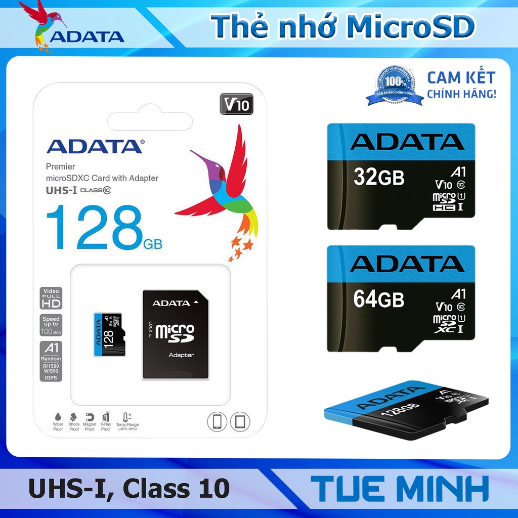 Điện Thoại & Phụ Kiện > Phụ kiện > Thẻ nhớ || Thẻ nhớ MicroSDXC ADATA UHS-I Class 10, V10, A1, 100MB/s - Hàng phân phối chính hãngCòn hàng