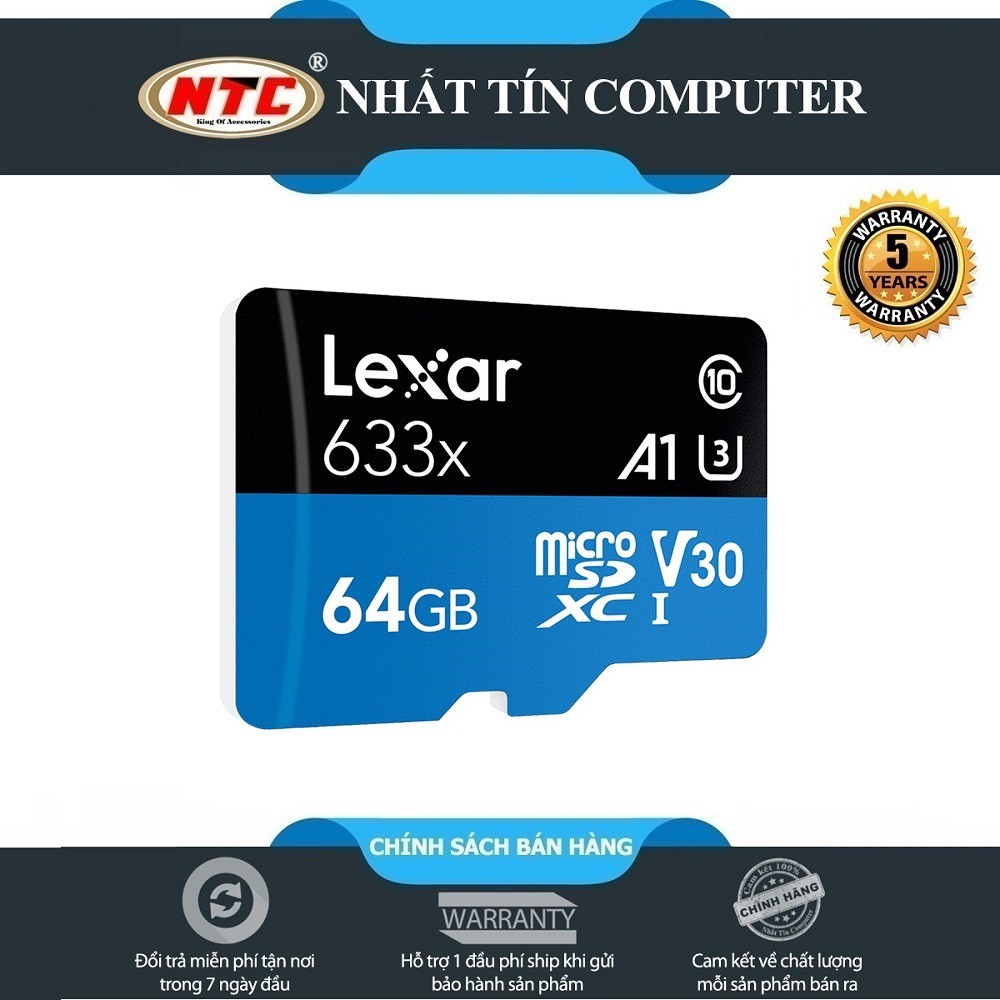Điện Thoại & Phụ Kiện > Phụ kiện > Thẻ nhớ || Thẻ nhớ MicroSDXC Lexar 64GB 633x A1 V30 U3 4K 95MB/s - Full box (Xanh)Còn hàng