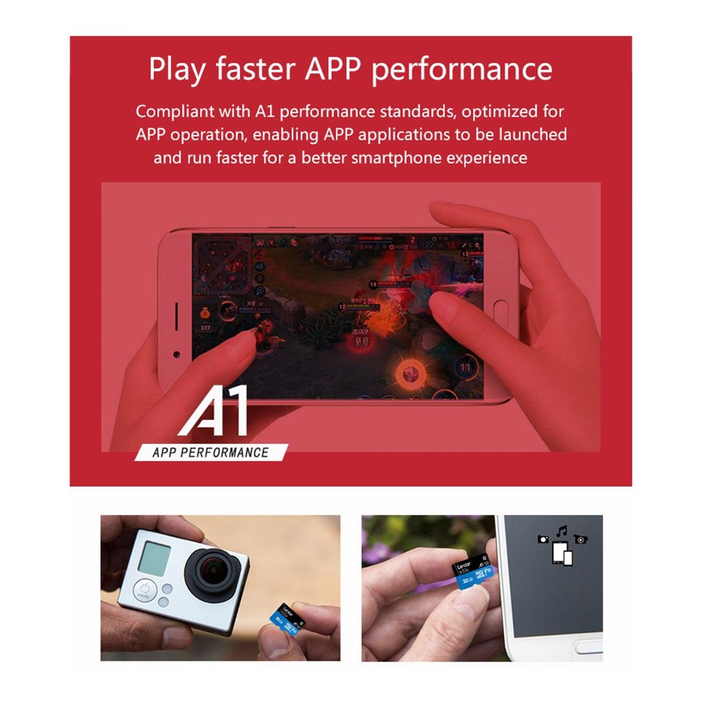 Thẻ nhớ MicroSDHC/microSDXC Lexar High-Performance A1 633x UHS-I rất tuyệt vời để sử dụng với máy tính bảng hoặc điện thoại thông minh của bạn, tải về hoặc lưu tất cả các tập tin giải trí yêu thích của bạn một cách nhanh chóng, bao gồm cả những bộ phim chất lượng cao nhứt, hình ảnh, và các bài hát.