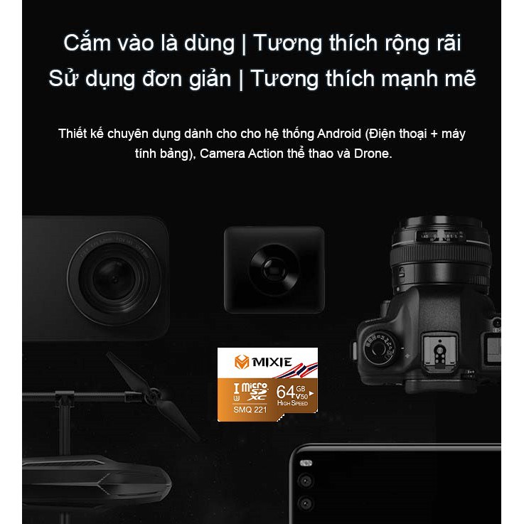 Thẻ nhớ Mixie 32GB / 64GB U3 Micro TF tốc độ cao 100Mb/s giá tốt, ổn định cho camera, điện thoại, camera hành trình và thiết bị ghi hình yêu cầu chuẩn tốc độ cao cho độ phân giải 4K, 2K, cam kết chính hãng nhập khẩu chính ngạch.