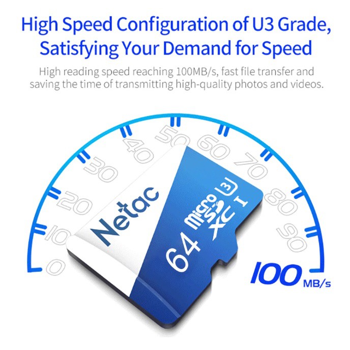 Với tốc độ cực nhanh lên đến 100MB/s (thậm chí hơn), Thẻ nhớ microSDHC / microSDXC Netac Extreme có thể nhanh chóng di chuyển tất cả hình ảnh và video của bạn từ điện thoại hoặc máy tính bảng của bạn để máy tính.