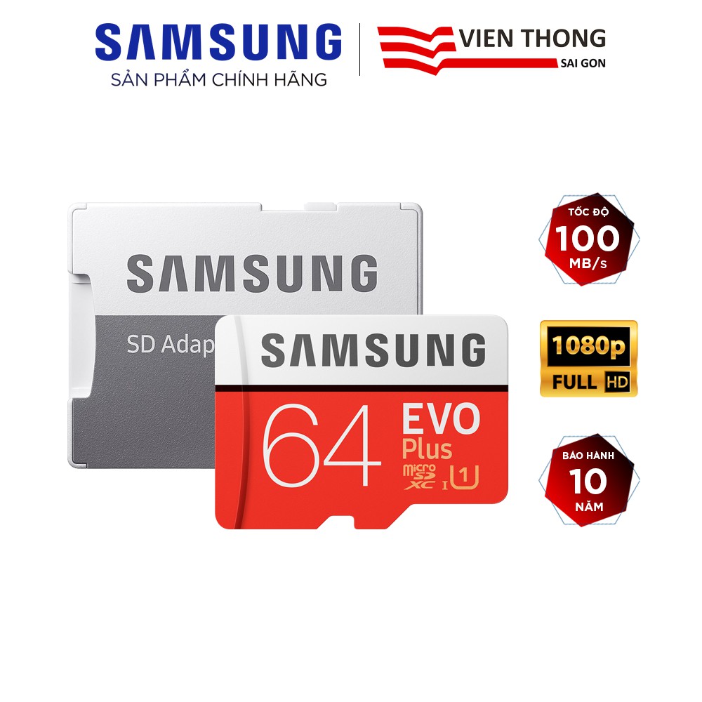 Điện Thoại & Phụ Kiện > Phụ kiện > Thẻ nhớ || Thẻ nhớ microSDXC Samsung Evo Plus 64GB U1 upto 100MB/s kèm Adapter - Hãng phân phối chính thứcCòn hàng