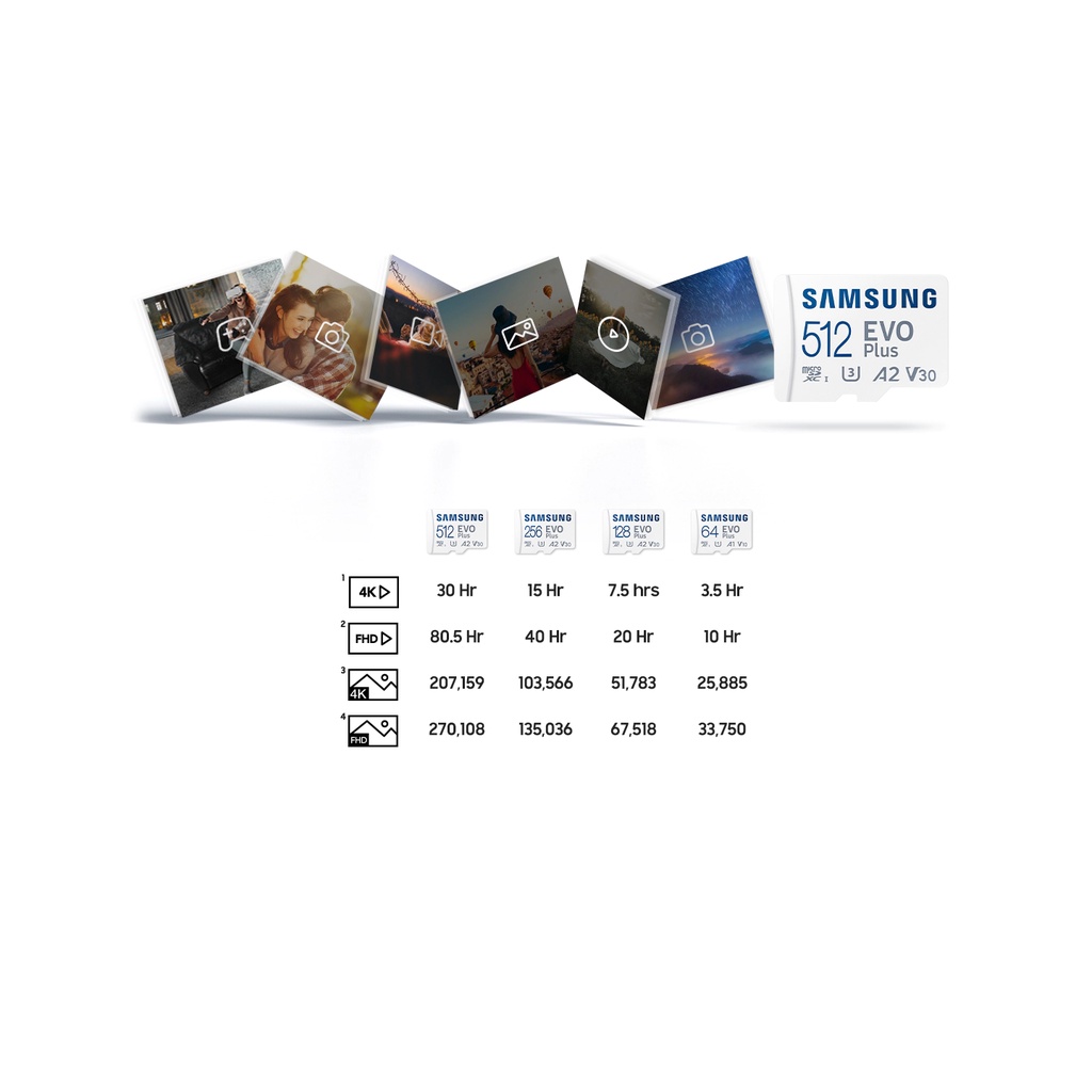 Thẻ nhớ MicroSD Samsung Evo Plus U1 A1 V10 130MB/s có dung lượng từ 64GB đến 512GB, Đáp ứng mọi nhu cầu lưu trữ của bạn.