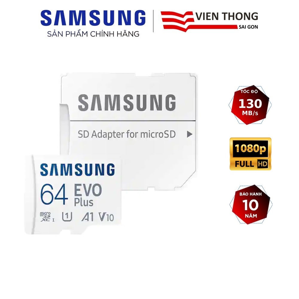Điện Thoại & Phụ Kiện > Phụ kiện > Thẻ nhớ || Thẻ nhớ microSDXC Samsung Evo Plus 64GB upto 130MB/s C10 U1 kèm Adapter (MB-MC64KA) - Hãng phân phối chính thứcCòn hàng