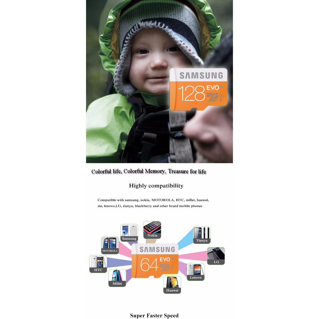 - Thẻ nhớ MicroSD Samsung Evo 48MB/s với tốc độ cao lên đến 48MB/s đọc và 20MB/s ghi giúp bạn chụp ảnh hành động, thể thao siêu mượt, rất lý tưởng cho quay Video Full HD. Và cho phép bạn di chuyển các tập tin cực nhanh