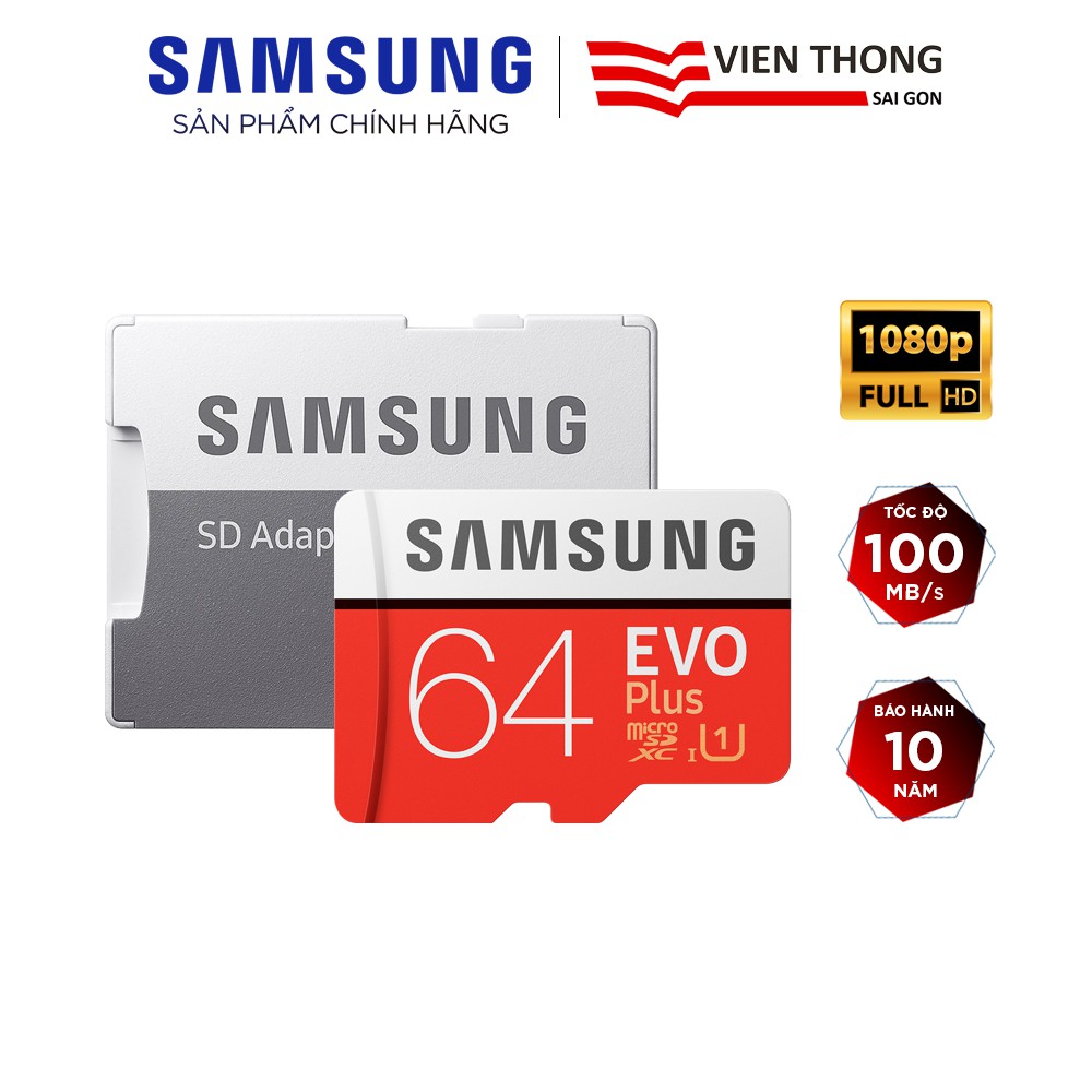 Thẻ nhớ microSDXC Samsung Evo Plus 64GB upto 100MB/s C10 U1 kèm Adapter (Bảo hành 10 năm) - Hãng phân phối chính thức
