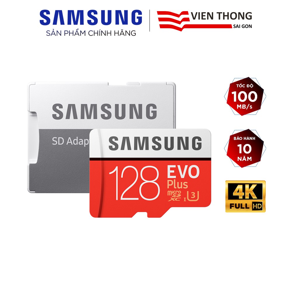 Thẻ nhớ microSDXC Samsung Evo Plus 128GB upto 100MB/s C10 U3 kèm Adapter