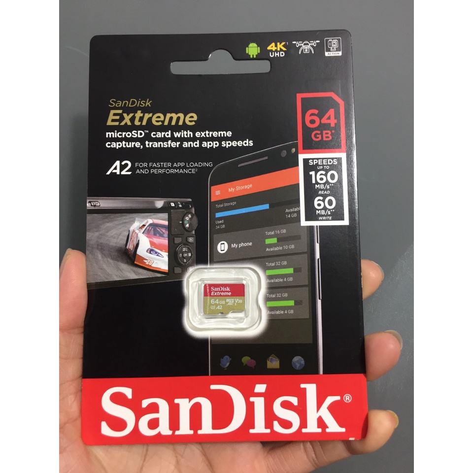 Thẻ nhớ MicroSDXC thương hiệu SanDisk ,phiên bản Extreme-App Performances: A2