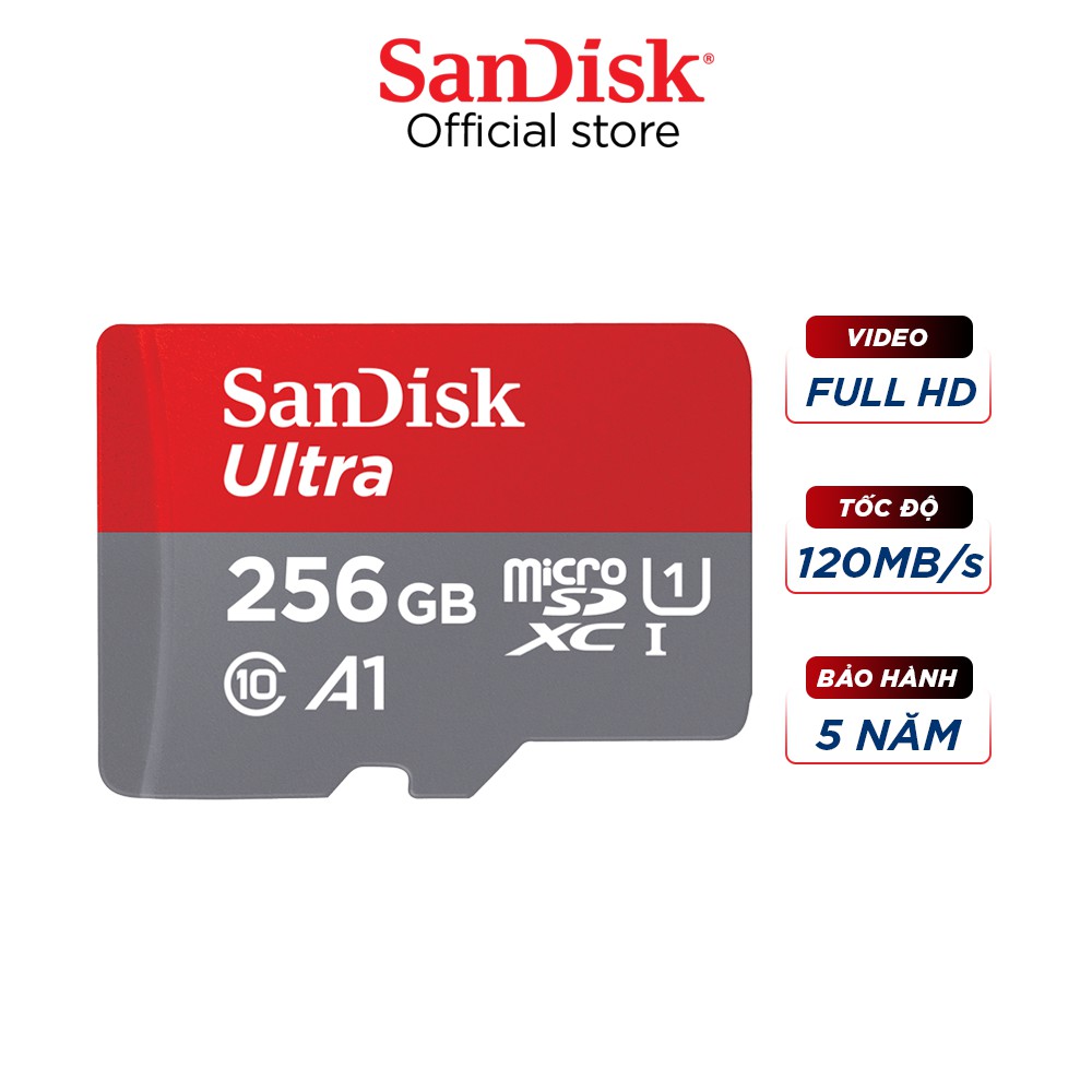 Giới thiệu Thẻ nhớ microSDXC SanDisk 256GB Ultra A1 UHS-I tốc độ upto 120MB/s (Đỏ xám)