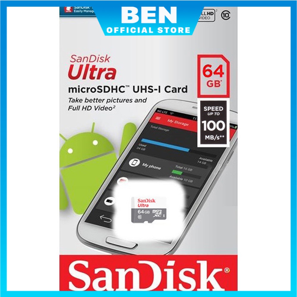 Giới thiệu Thẻ Nhớ MicroSDXC SanDisk Ultra 64GB 100MB/s 667x SDSQUNR-064G-GN3MN