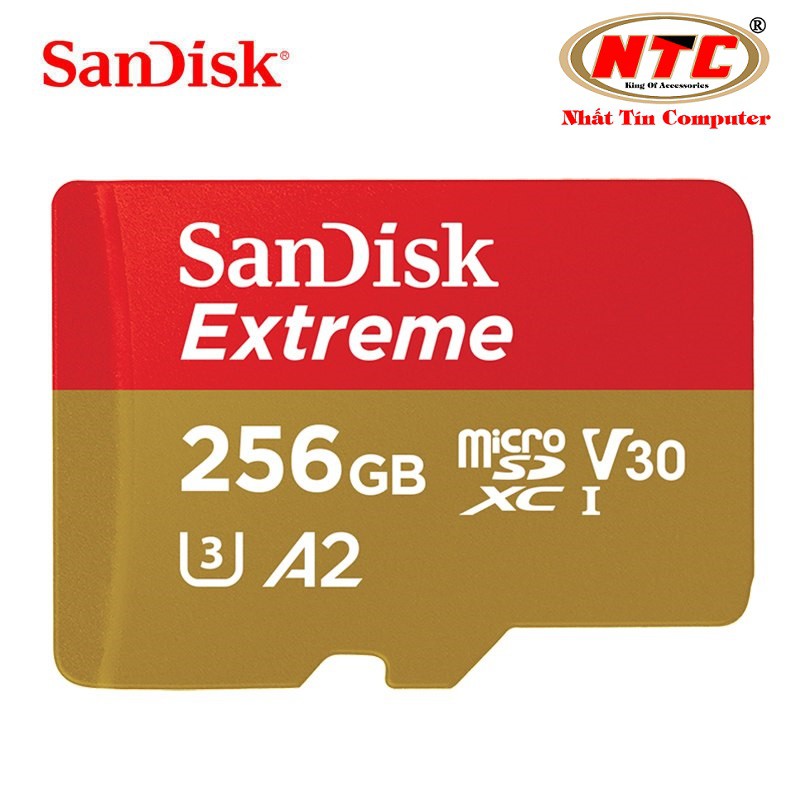 Điện Thoại & Phụ Kiện > Phụ kiện > Thẻ nhớ || Thẻ Nhớ MicroSDXC SanDisk Extreme V30 U3 4K A2 256GB R160MB/s W90MB/s - Kèm Adapter (Gold) - Nhất Tín ComputerCòn hàng