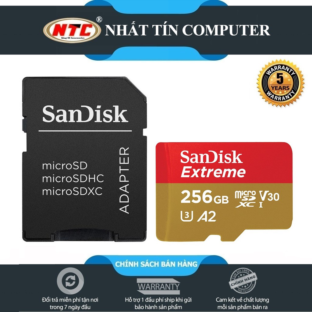 Thẻ Nhớ MicroSDXC SanDisk Extreme V30 U3 4K A2 256GB R160MB/s W90MB/s - Kèm Adapter (Gold) - Nhất Tín Computer
