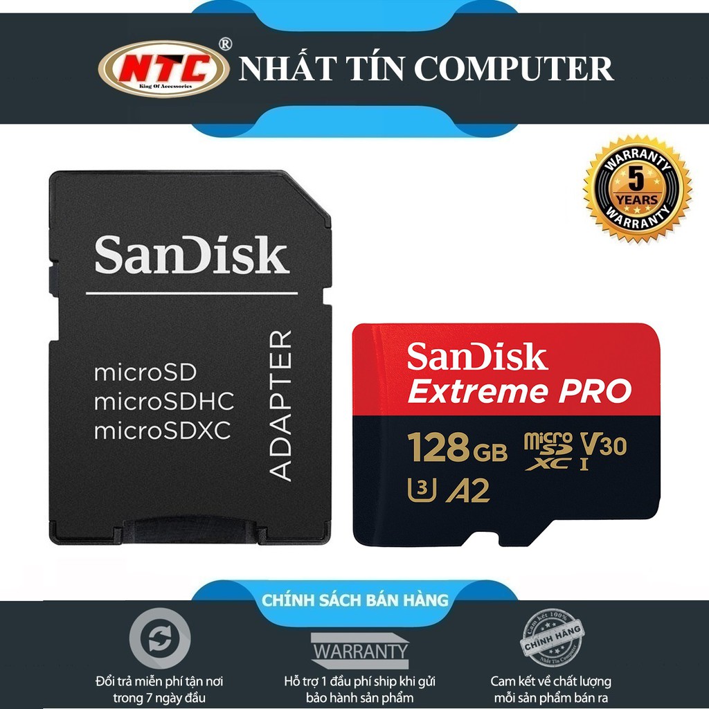 Điện Thoại & Phụ Kiện > Phụ kiện > Thẻ nhớ || Thẻ Nhớ MicroSDXC SanDisk Extreme Pro V30 U3 4K A2 128GB R170MB/s W90MB/s (Đen đỏ)Còn hàng