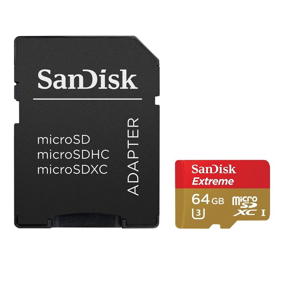 Thẻ Nhớ MicroSDXC SanDisk Extreme 64GB U3 4K 90MB/s (Vàng) - Nhất Tín ComputerThẻ nhớ MicroSDXC SanDisk Extreme với tốc độ ghi cực nhanh cho phép chụp hình và quay Video Full HD, 4k dành cho điện thoại thông minh Android, máy ảnh MIL. Thẻ nhớ MicroSD SanDisk Extreme được thiết kế đặc biệt có thể tồn tại ngay cả trong điều kiện môi trường khắc nghiệt nhứt. Tốc độ nhanh cho phép bạn chụp rõ từng chi tiết và giúp di chuyển dữ liệu cực nhanh. Với dung lượng lên đến 64GB giúp mở rộng bộ nhớ điện thoại của bạn và hỗ trợ quay phim 4K chất lượng cao.