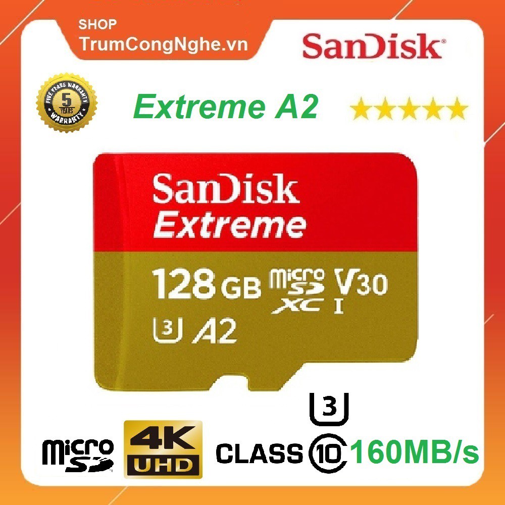Thẻ Nhớ MicroSDXC SanDisk Extreme V30 A2 Class10 4K 128GB 160MB/s - Tốc độ siêu cao