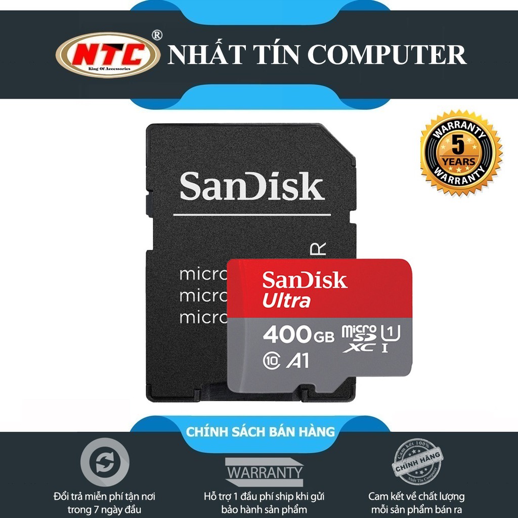 Điện Thoại & Phụ Kiện > Phụ kiện > Thẻ nhớ || Thẻ nhớ MicroSDXC SanDisk Ultra A1 400GB Class 10 U1 100MB/s kèm adapter (Đỏ)Còn hàng