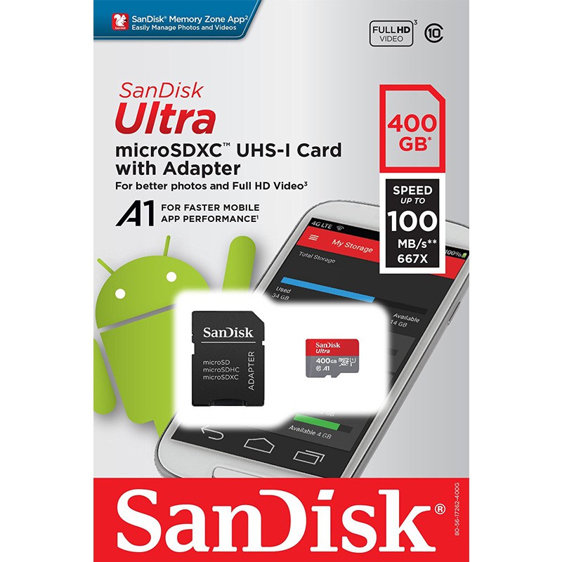 Giới thiệu Thẻ nhớ MicroSDXC SanDisk Ultra A1 400GB Class 10 U1 100MB/s kèm adapter (Đỏ)