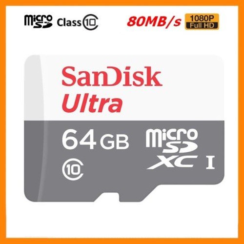 Thẻ nhớ MicroSDXC SanDisk Ultra 533X 64GB 80MB/s - Model 2017 (Trắng bạc)Thẻ nhớ MicroSD SanDisk Ultra UHS-I cho phép bạn lưu giữ, truyền tải hình ảnh có độ phân giải cao và video Full HD trên điện thoại thông minh Android hoặc máy tính bảng của bạn. Với dung lượng lên đến 200 GB, thẻ nhớ MicroSD SanDisk Ultra UHS-I có thẻ lưu trữ rất nhiều album hình ảnh độ phân giải cao và quay video Full HD. Với tốc độ chuẩn Class 10 để quay video Full HD và tốc độ đọc lên đến 80MB/s để chuyển file cực nhanh. Thẻ nhớ MicroSD SanDisk Ultra UHS-I không thấm nước, chống thấm, chống nhiệt, chống sốc, chống tia x-ray, và chống từ trường.