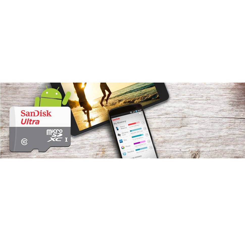 Với tốc độ cực nhanh lên đến 100MB/s, thẻ nhớ MicroSD Sandisk Ultra có thể nhanh chóng di chuyển tất cả hình ảnh và video của bạn từ điện thoại hoặc máy tính bảng của bạn để máy tính.