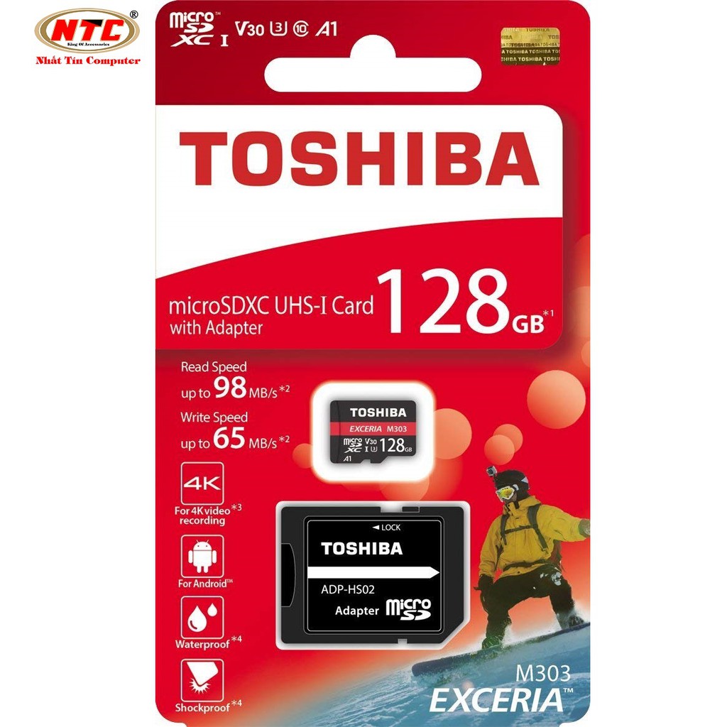 Điện Thoại & Phụ Kiện > Phụ kiện > Thẻ nhớ || Thẻ nhớ MicroSDXC Toshiba Exceria M303 128GB UHS-I U3 4K V30 A1 R98MB/s W65MB/s (Đen)Còn hàng