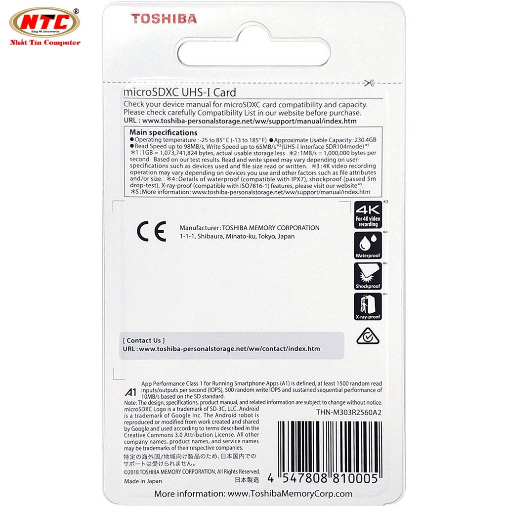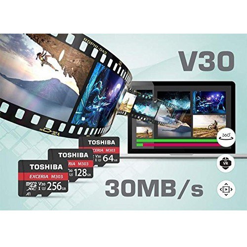 Thẻ nhớ MicroSD Toshiba Exceria M303 là một giải pháp để đáp ứng tất cả các nhu cầu về tốc độ để chụp hình và quay Video 4K hoặc Full HD trên điện thoại thông minh, máy tính bảng Camera hành trình hoặc Action Camera. Được thiết kế để sử dụng trong những điều kiện khắc nghiệt nhất, không thấm nước, chống sốc và chống tia X-Ray.Thẻ nhớ MicroSD Toshiba Exceria M303 với tốc độ cao giúp bạn quay video trơn tru mà không bị mất bất kì khung hình nào, nhanh chóng tải các ứng dụng và chụp ảnh liên tục. Ngoài ra, thẻ nhớ MicroSD Toshiba Exceria M303 đi kèm với một bộ chuyển đổi Adapter Micro to SD rất tiện dụng, cho phép bạn sử dụng thẻ nhớ MicroSD trên máy ảnh của bạn.
