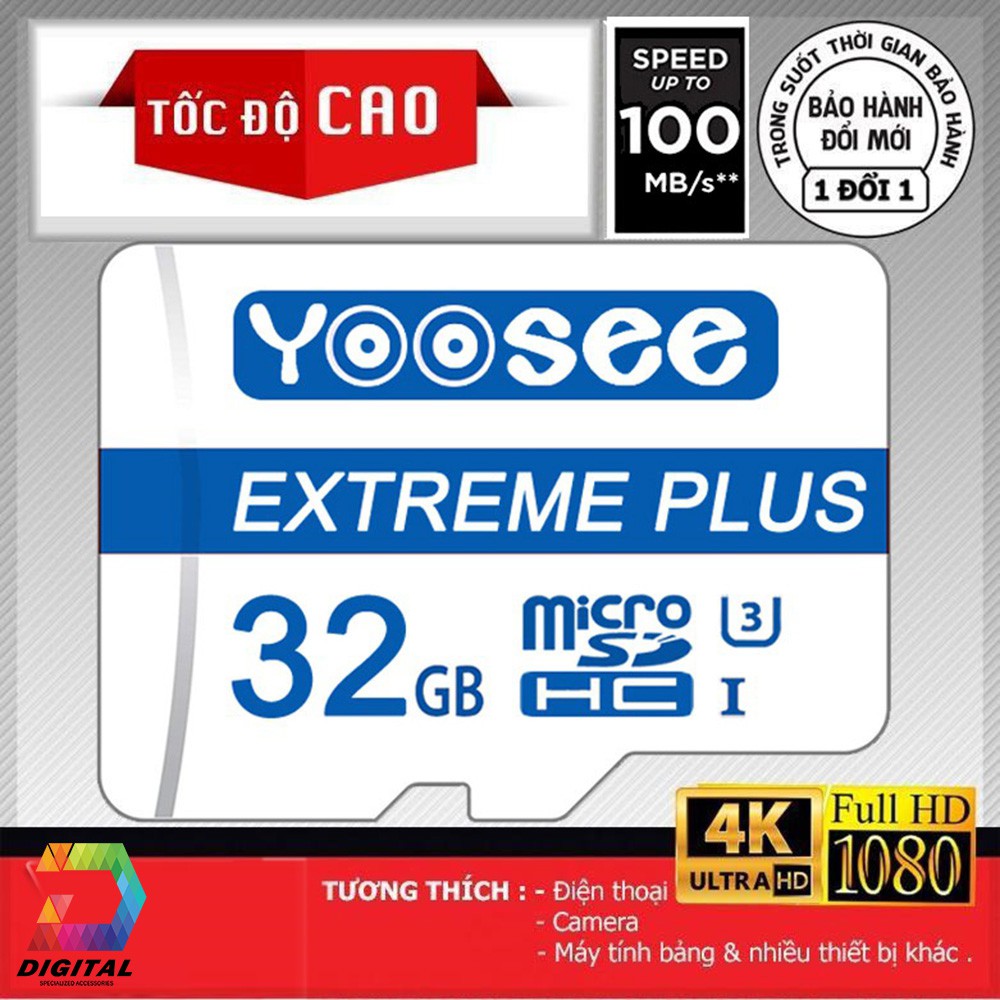Thẻ Nhớ Microsdxc Yoosee 32GB Extreme Plus UHS-I U3 4K R90MB/S W40MB/S Chính Hãng- HÀNG BÊN SHOP CHÍNH HÃNG TRONG HỘP NGUYÊN SEAL, KHÔNG PHẢI LOẠI ĐỂ TRẦN RẺ TIỀN TRÔI NỔI TRÊN THỊ TRƯỜNG!
